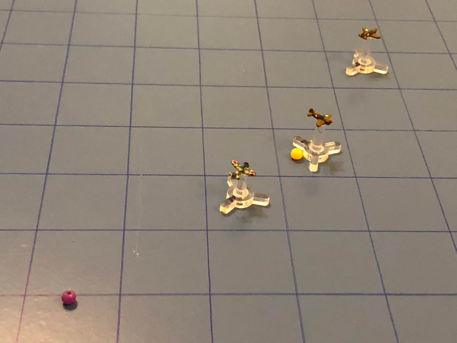 *A brilliant move, protecting the bomber's tail and making it impossible for Captain Jordan to fire on him (in these rules you must move at least one square before you're eligible to fire)! The boy is literally running circles around me, while I keep ignoring my mission to chase fighters, even running one of my flight leaders out of the fight.