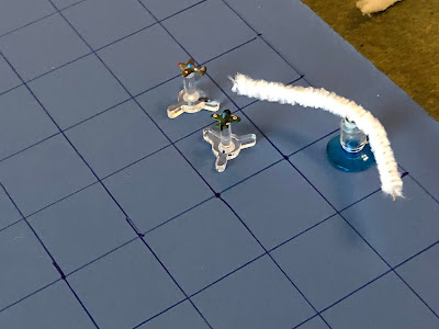 This is my arena for aerial combat; simple, yet durable and, to me, beautiful (in a simple, durable way). I'm using tiny aircraft designed by my buddy Thomaston; not sure what size they are, just that they are much smaller than 1/600. They're 3D printed models that I mounted on cut-down bases from Litko, and I'm using a very simple rules system called "Battle of Britain," which I found for free over on The Miniatures Page (I've already played a good 20 or so fights with them). Left is north, with the Japanese strike group there, and the American interceptors at right.